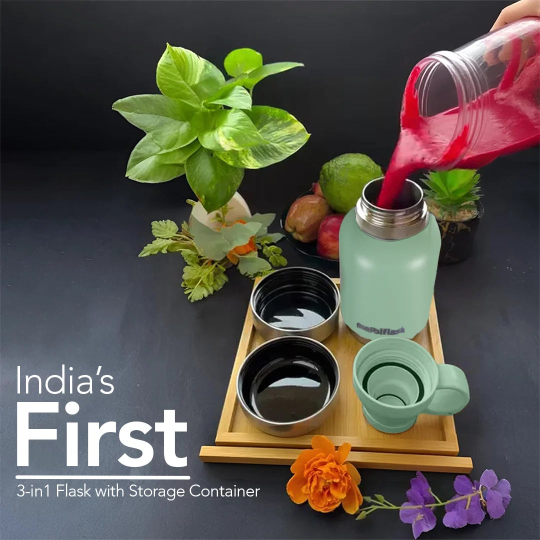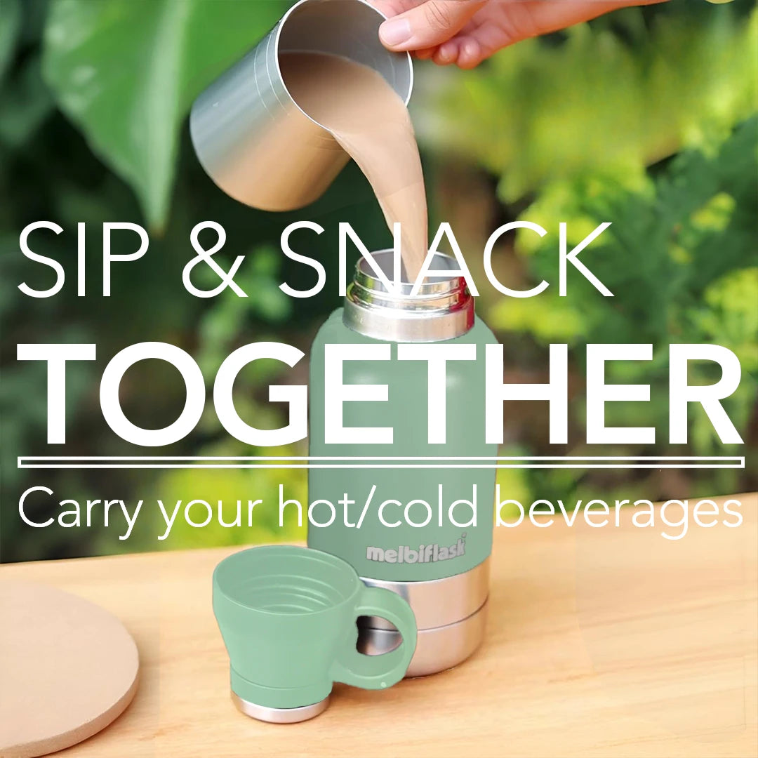 OFFICE SNACK FLASK - Have the habit of carrying Green Tea Bags and some protein snacks to the office? Melbiflask can come in Handy by providing a 3-in-1 option to carry the tea bags and almonds along with water to the office KIDS SNACK FLASK - Sending a quick bite for a snack break gets easy with the 3-in-1 melbiflask. Pack Biscuits or Snacks with Cold Water for kids when they go to school or college.